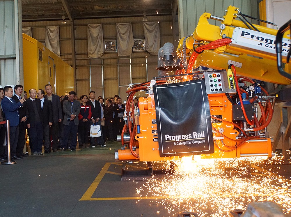 在啟世機(jī)械的焊軌機(jī)車間,與會代表觀看了采用烏克蘭巴頓電焊研究院焊接專利技術(shù)的BHP澳洲標(biāo)準(zhǔn)焊軌機(jī)現(xiàn)場焊接演示。